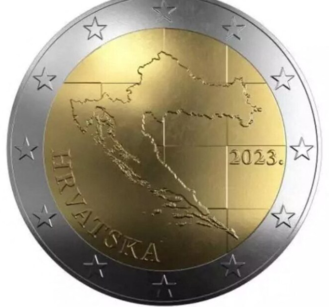 Sur la pièce de 2 euros, la carte de la Croatie.